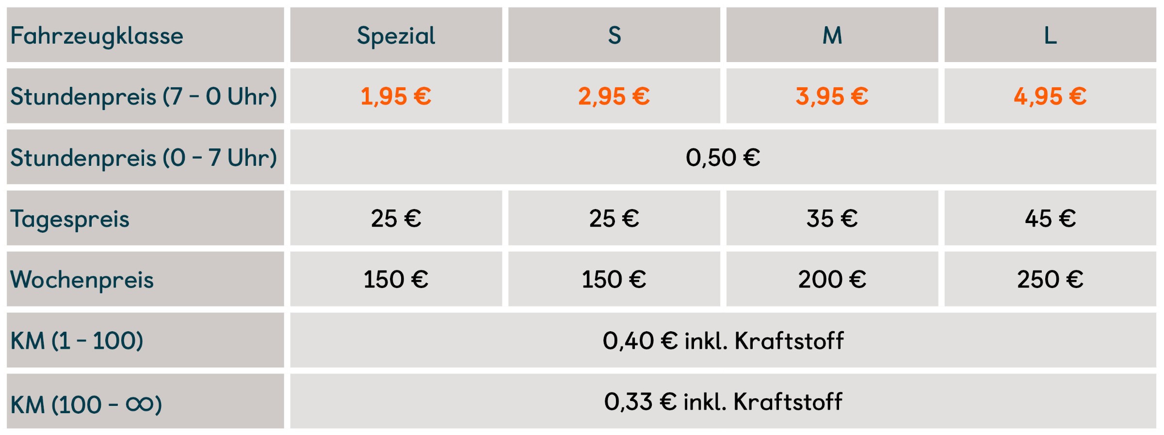 Für Anlässe außerhalb der regulären Fahrten gelten folgende Preise: